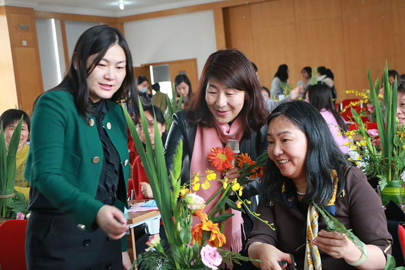 表彰活动结束后,花卉资源与育种团队张秀新研究员讲解插花艺术,与会人员充分发挥想象力和创造力,做出一个个生机盎然、赏心悦目的插花作品,活动现场成为一片欢乐和谐的花的海洋。