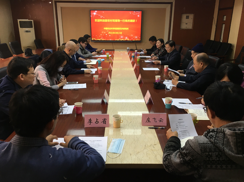 3月15日,科技部农村科技司蒋丹平副司长、农业农村科技处霍季春处长等一行到蔬菜花卉研究所就蔬菜种业“卡脖子”技术攻关进行调研。蔬菜花卉所方智远院士、中国农科院科技局熊明民副局长、蔬菜花卉所所长张友军、副所长张圣平陪同调研。李蕾处长主持调研会。