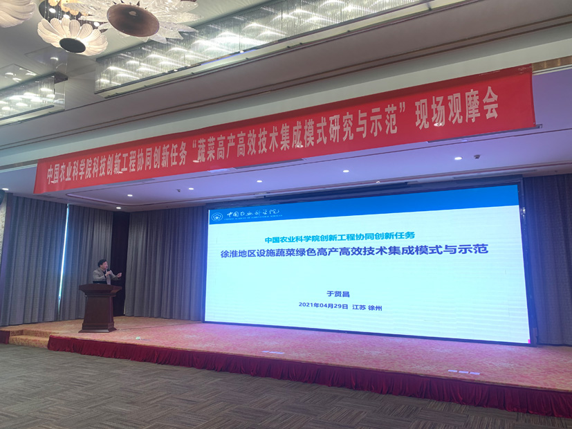 4月29日,中国农业科学院成果转化局邀请国内有关专家来到江苏省徐州市贾汪区,对中国农科院蔬菜花卉研究所主持完成的“黄淮地区设施蔬菜高产高效技术集成模式与示范”项目进行了现场观摩并验收。该项目属于中国农业科学院科技创新工程协同创新项目“蔬菜高产高效技术集成模式研究与示范”任务之一。蔬菜花卉研究所副所长卢林刚主持现场观摩会。