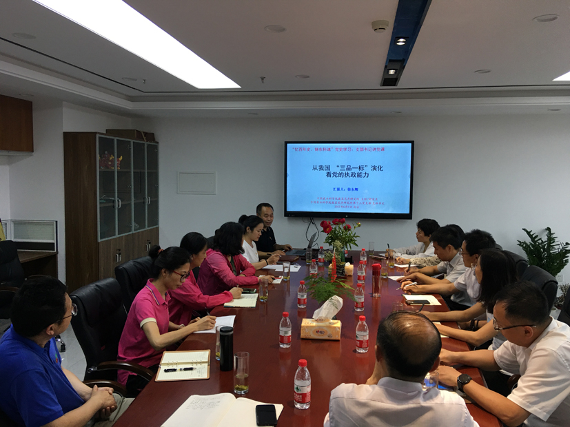 会议中,徐东辉研究员首先以“从我国‘三品一标’演化看党的执政能力”为主题讲党课,内容涵盖新旧“三品一标”的概念及发展历程,新“三品一标”战略对于农业品种、品质、品牌及标准化生产等各个领域带来的机遇与挑战以及党和政府对于“三品一标”发展的引领作用等方面。