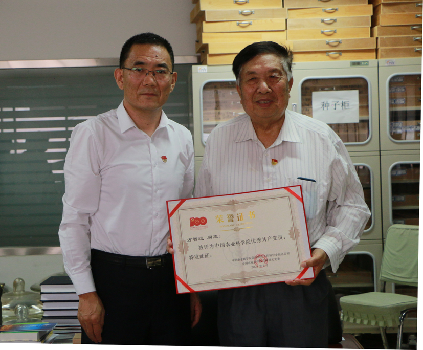 张合成首先对方智远院士获得“全国优秀共产党员”荣誉称号表示热烈祝贺,感谢方院士长期以来为我国农业科研事业和我院发展做出的卓越贡献,并衷心祝愿方院士节日快乐、身体健康。