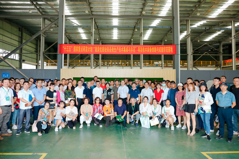 参会代表在蔬菜育苗智能装备制造企业合影