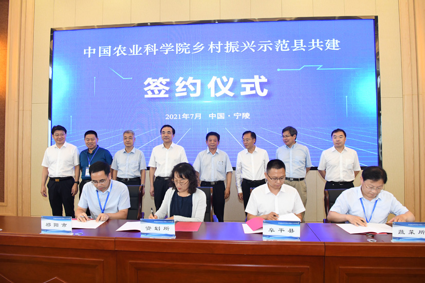 蔬菜花卉研究所副所长张圣平参加会议,现场汇报蔬菜花卉所成果转化和乡村振兴工作开展情况。在“乡村振兴示范县共建”签约仪式上,蔬菜花卉所和阜平县作为我院相关研究所和示范县代表现场签约。