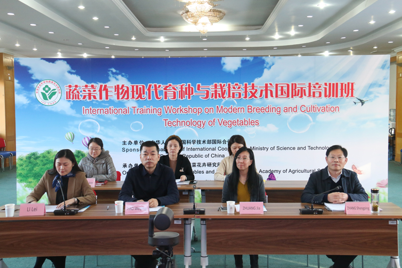 11月26日,由科技部国际合作司主办,中国农业科学院蔬菜花卉研究所承办的“蔬菜作物现代育种与栽培技术国际培训班(线上)”在北京顺利闭幕。中国科学技术交流中心副主任庄嘉、中国农科院国际合作局副局长郝卫平,蔬菜花卉所副所长张圣平、科研处处长李蕾等出席了开幕式及结业典礼。