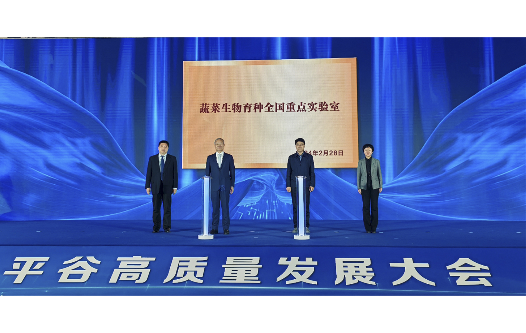 在2月28日召开的平谷高质量发展大会上,中国农业科学院党组书记杨振海与北京市委副书记刘伟等领导共同宣布农业中关村蔬菜园艺公共实验平台等项目开工,并与平谷区委书记唐海龙为蔬菜生物育种全国重点实验室揭牌。