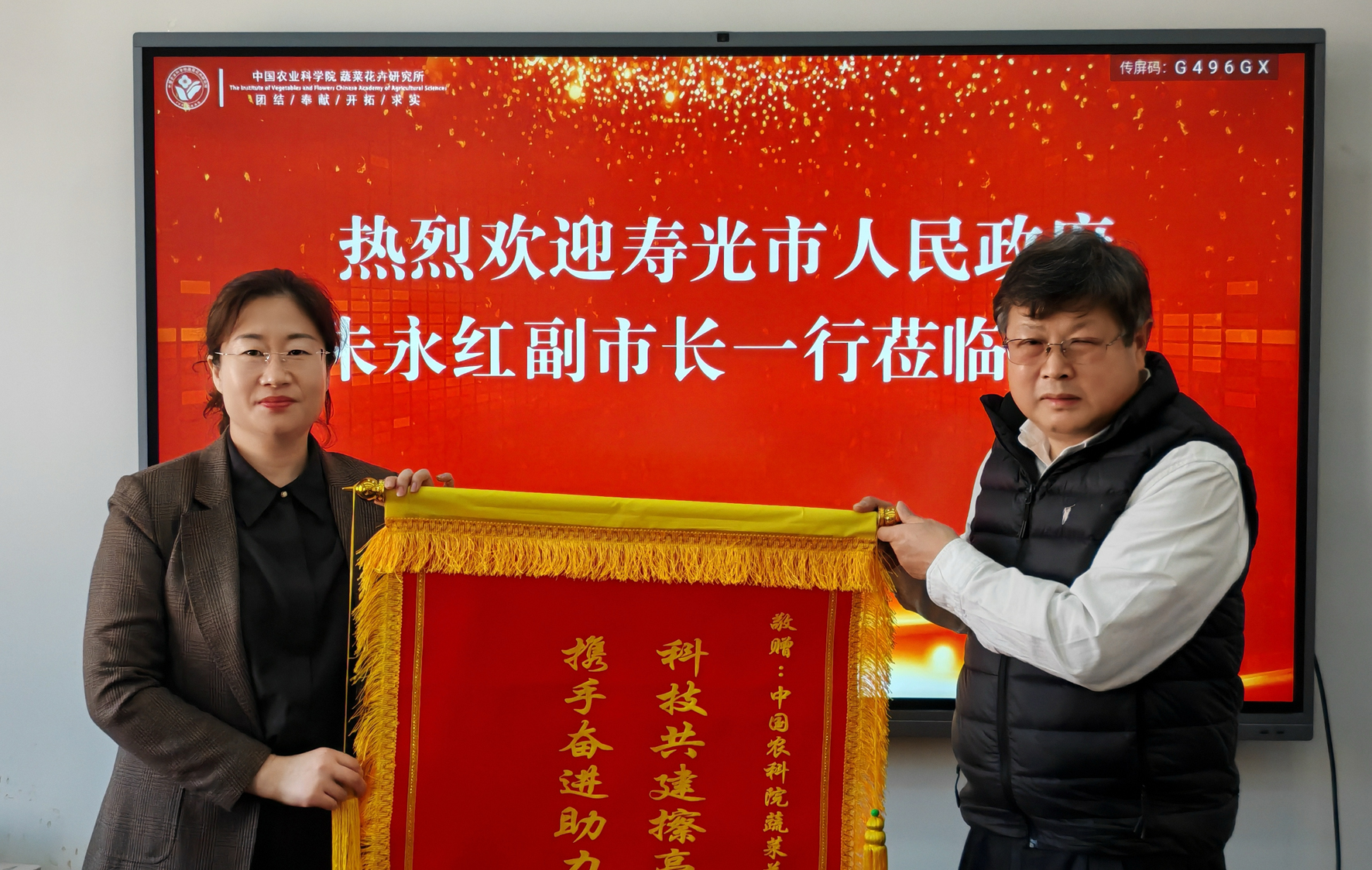 3月20日,寿光市副市长朱永红一行到访中国农业科学院蔬菜花卉研究所,商讨新一轮院地科技共建计划,并向蔬菜花卉所赠送感谢信和锦旗。蔬菜花卉所有关领导、部门负责人参加座谈,副所长张圣平主持会议。