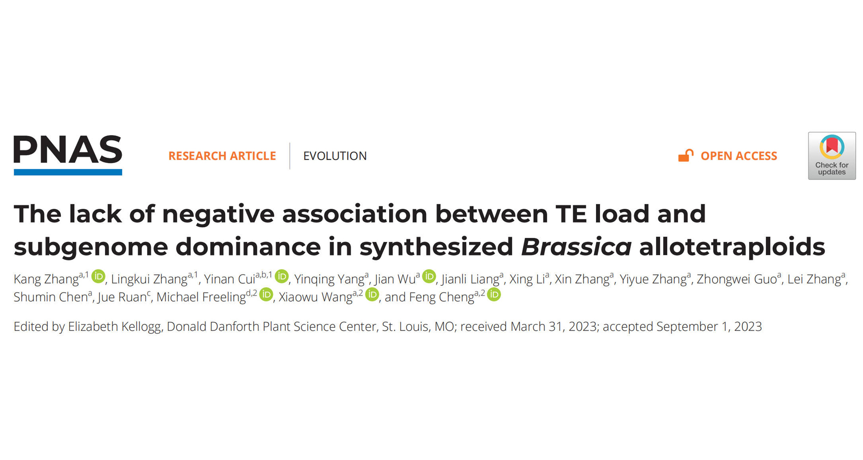 近日,中国农业科学院蔬菜花卉研究所蔬菜分子设计育种团队通过合成十字花科异源四倍体,解析了多倍体亚基因组优势的建立模式,否定了此前研究人员对“转座子驱动多倍体亚基因组优势形成”的已有认识,相关成果以“The lack of negative ...
