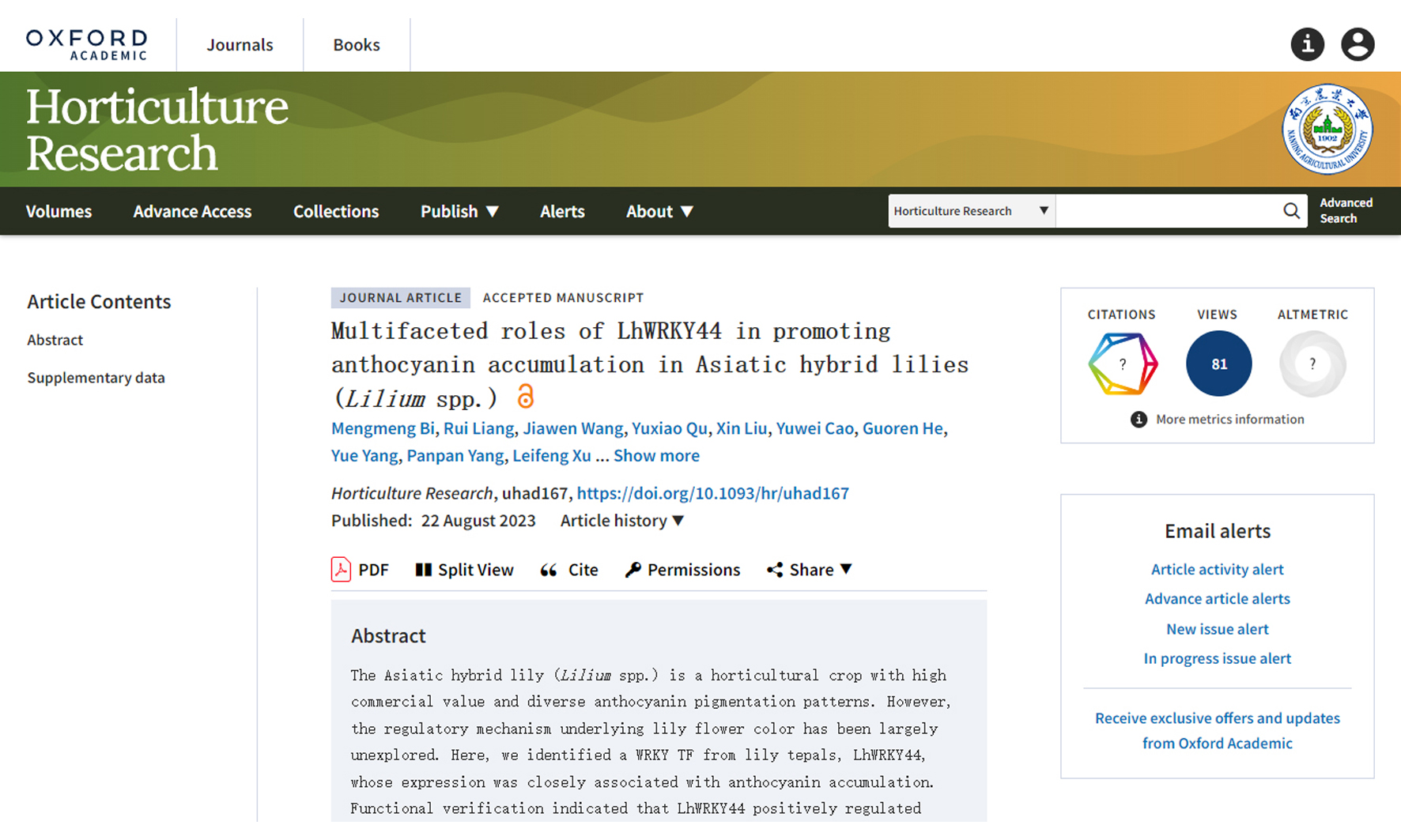 近日,中国农业科学院蔬菜花卉研究所百合课题组在百合花青素苷生物合成调控方面取得新进展。相关研究内容“Multifaceted roles of LhWRKY44 in promoting anthocyanin accumulation i...