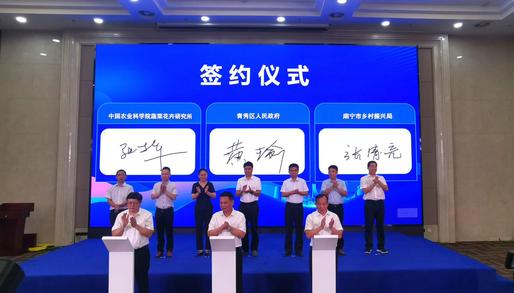 7月26日上午,中国农业科学院蔬菜花卉研究所与广西自治区南宁市青秀区人民政府签订合作协议,正式成立华南研发中心。中国农科院党组书记杨振海、发展建设局局长夏耀西、成果转化局副局长刘洁,自治区农业农村厅副厅长梁纪豪、南宁市政府副市长刘宗晓共同见...
