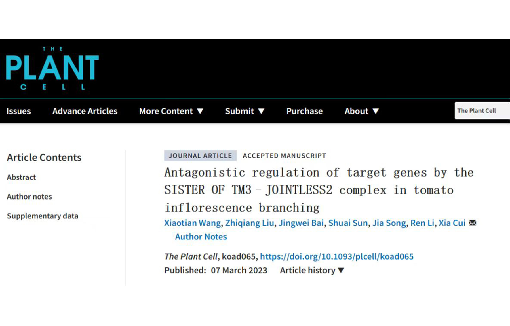 • 2023-03-09 品质分子改良课题组揭示番茄STM3-J2复合体拮抗调控花序分枝数的分子机制