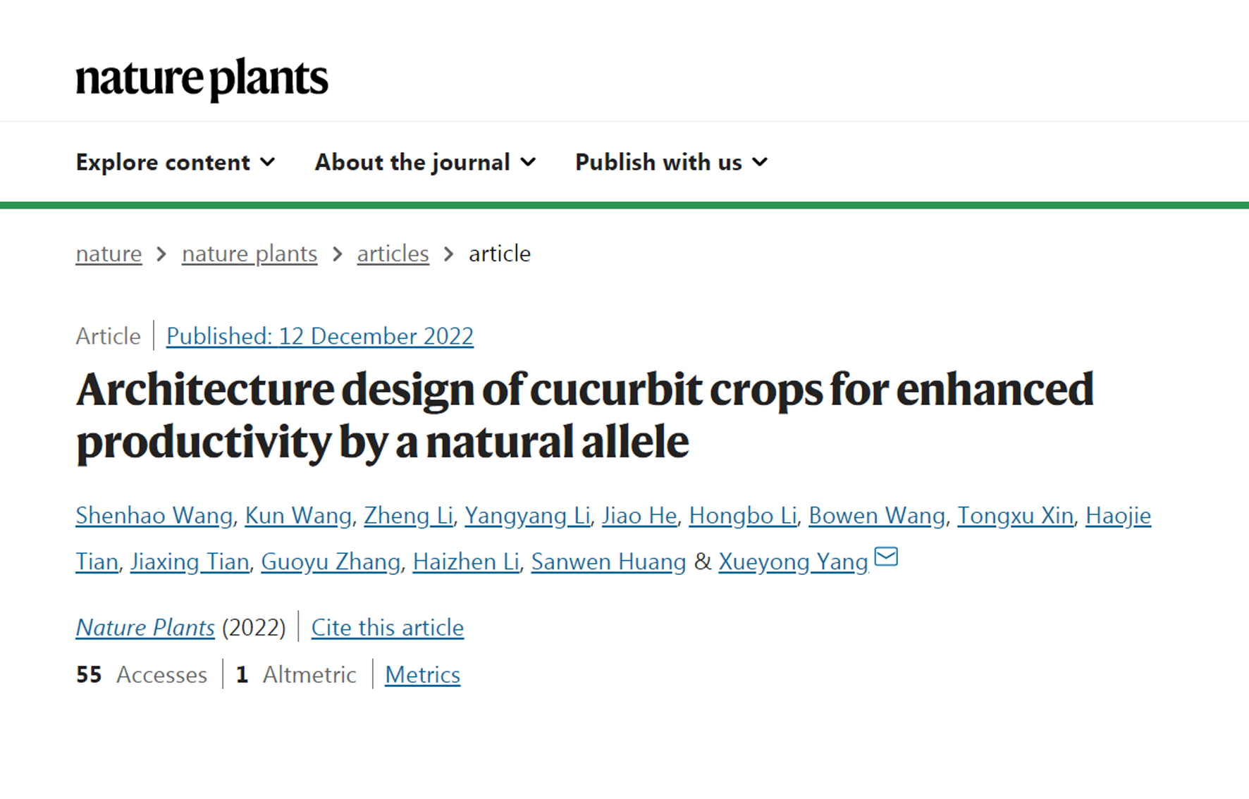 • 2022-12-14 蔬菜花卉所杨学勇团队利用定向人工进化策略创造葫芦科瓜类作物紧凑株型