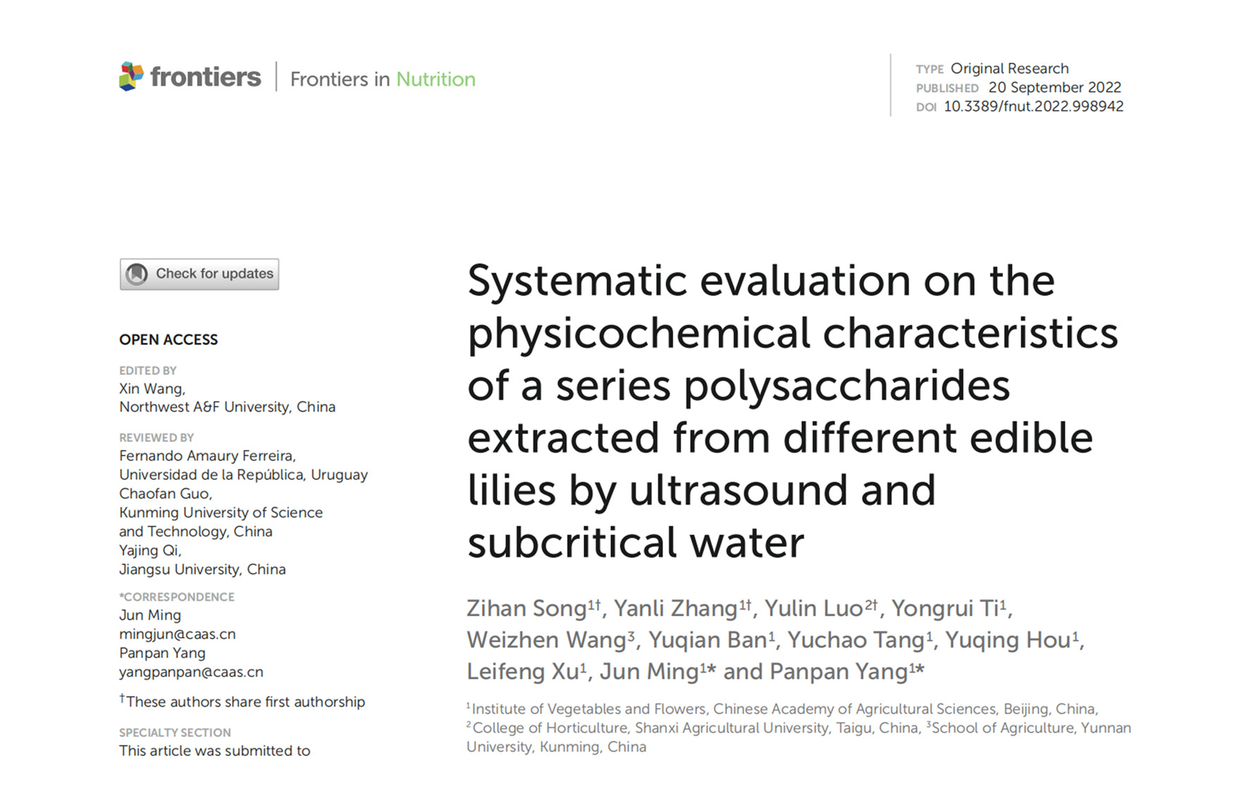 • 2022-09-26 百合课题组联合采后加工课题组系统评价了不同百合多糖的理化和功能特性