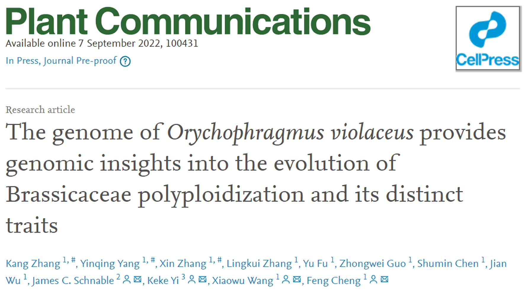• 2022-09-08 二月兰基因组解析为十字花科古多倍化演化和野生资源利用提供新思路