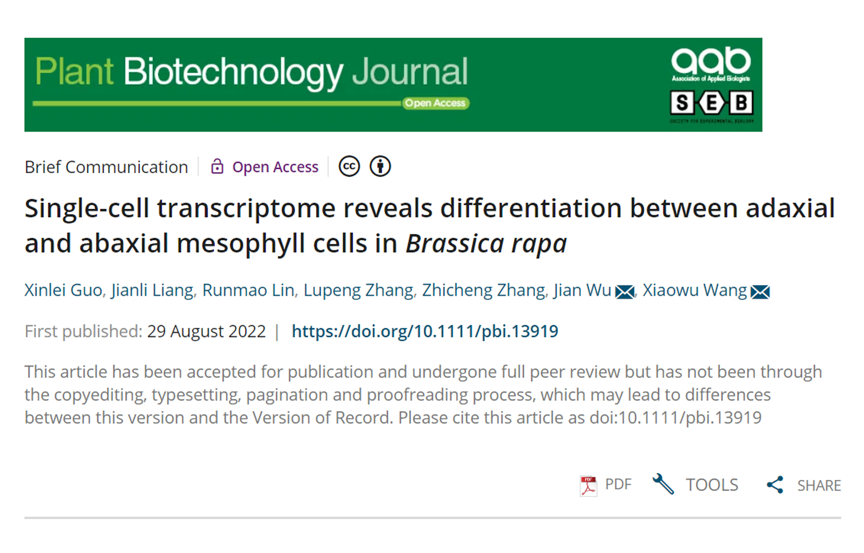 • 2022-09-02 Plant Biotechnology Journal | 单细胞转录组测序揭示了大白菜腹面和背面叶肉细胞的分化