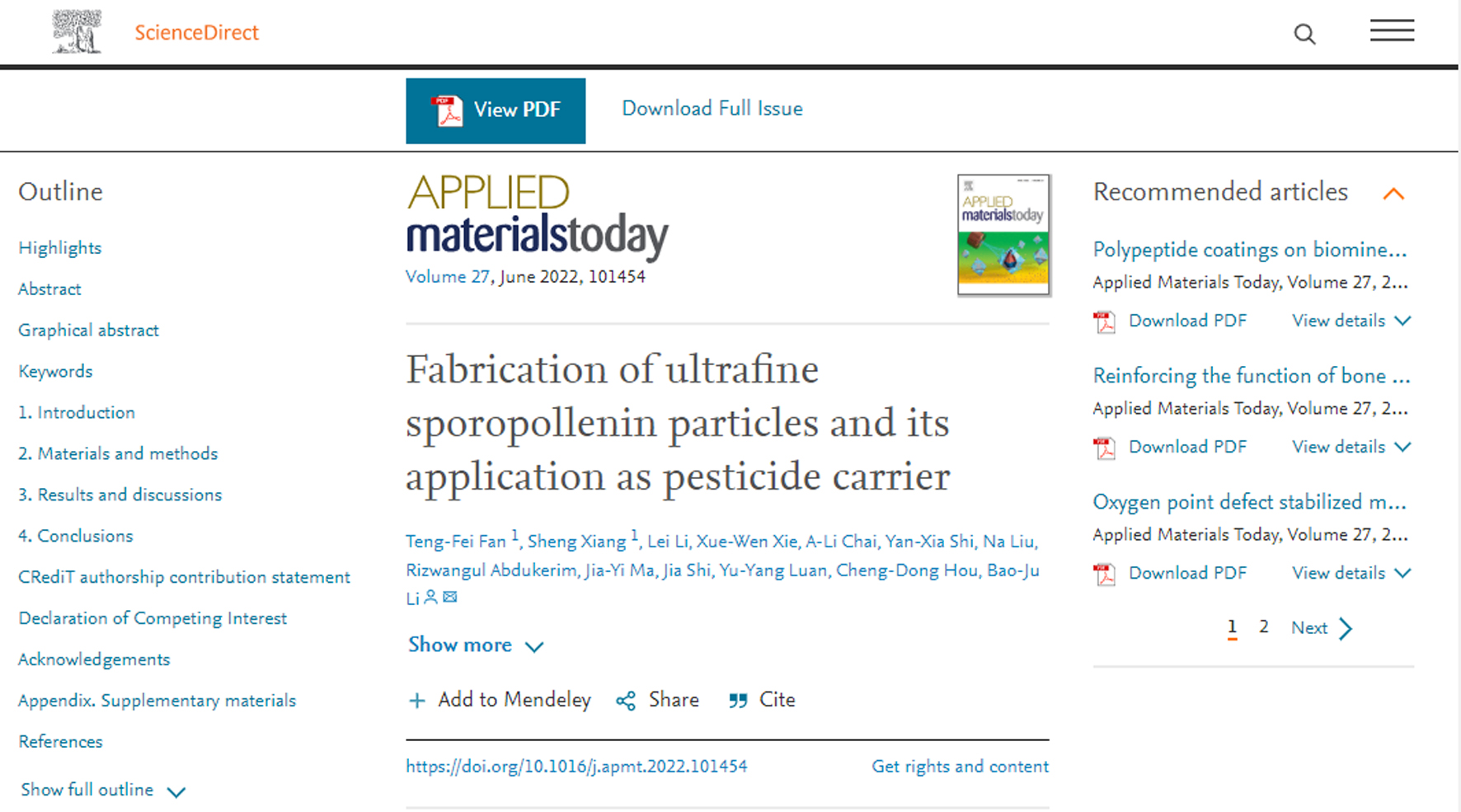 近日,中国农科院蔬菜病害防控创新团队在利用农药控释载体创新蔬菜病害绿色防控新途径方面取得重要进展,相关内容以“Fabrication of ultrafine sporopollenin particles and its applicat...