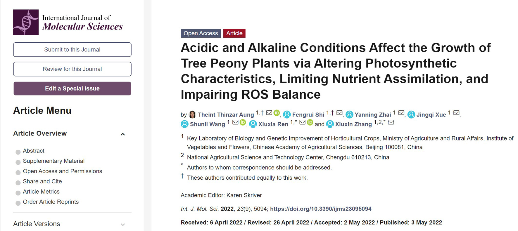近日,中国农业科学院蔬菜花卉研究所牡丹课题组在基质pH值影响牡丹生长发育方面取得重要进展,相关内容以“Acidic and alkaline conditions affect the growth of tree peony plants...