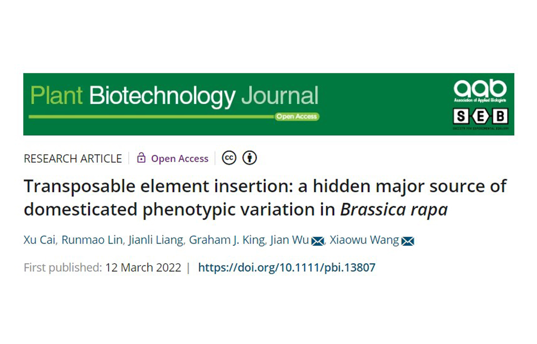 • 2022-03-16 Plant Biotechnology Journal | 转座子插入是白菜驯化表型变异的重要来源