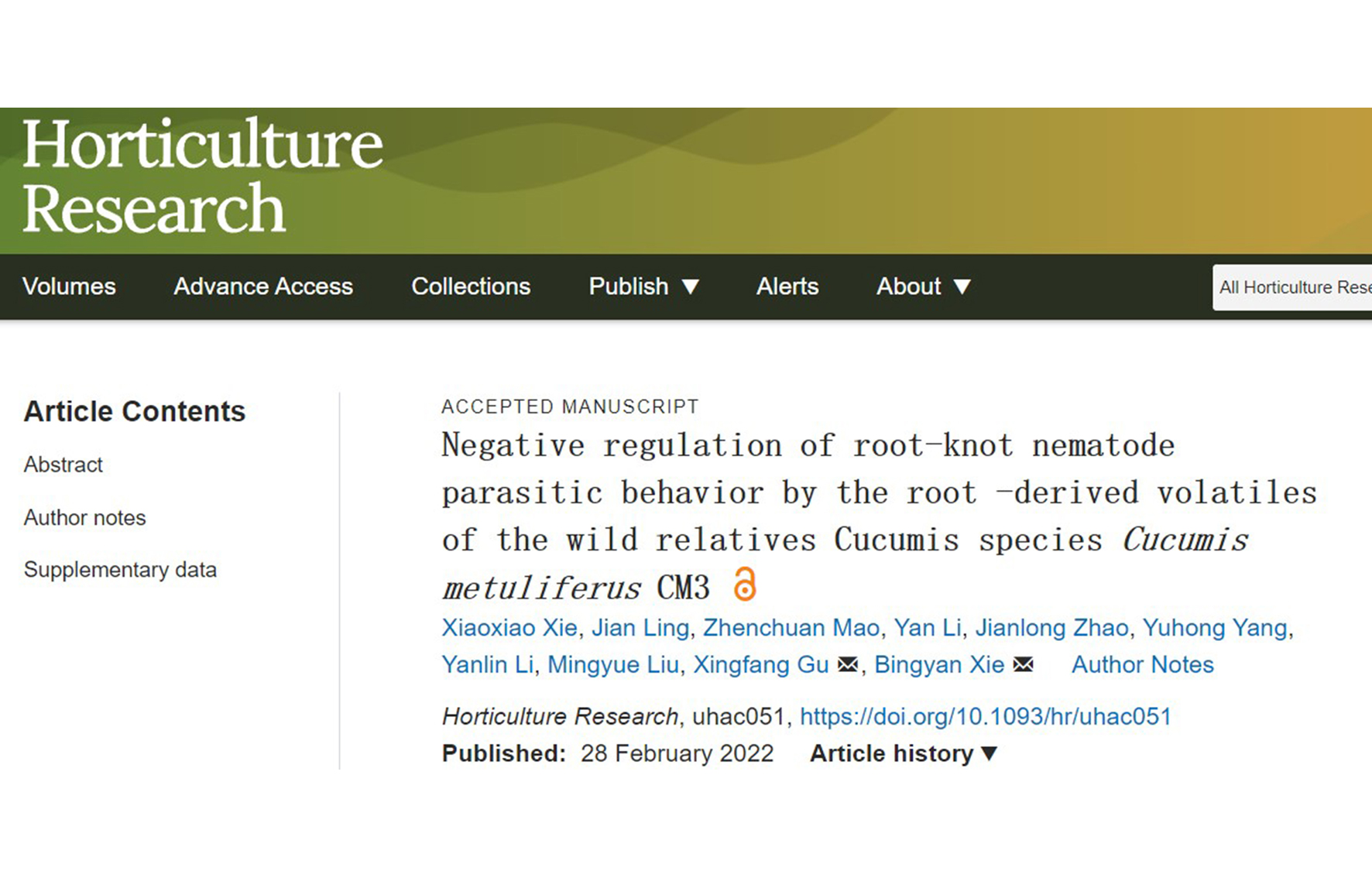 • 2022-04-13 蔬菜花卉所揭示刺角瓜根系挥发物对线虫寄生行为的负调控机制