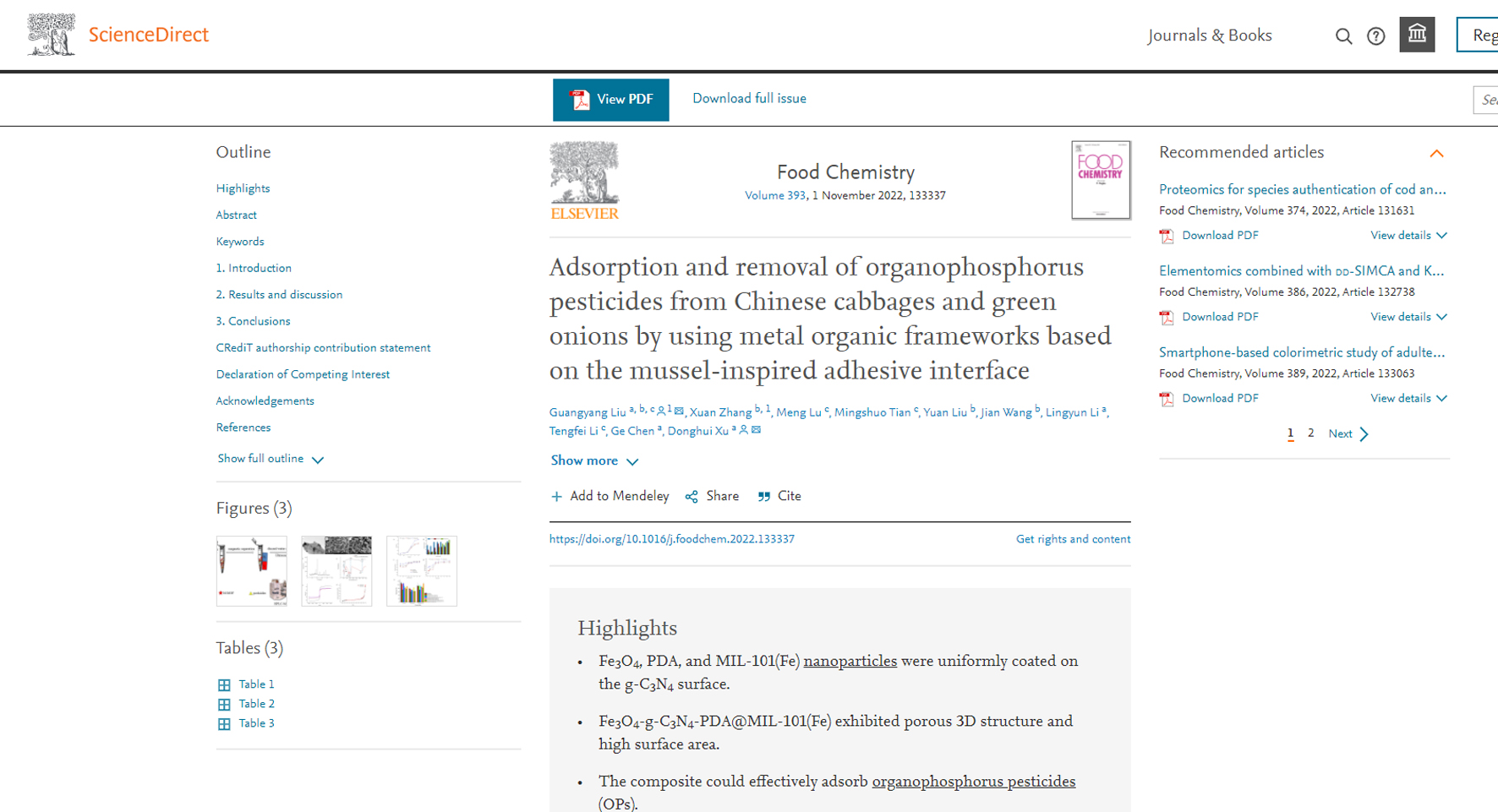 近日,中国农业科学院蔬菜花卉研究所质量与安全课题组在新型仿生MOFs复合界面制备及农药残留控制去除技术研发方面取得重要进展,相关研究成果以“Adsorption and removal of organophosphorus pestici...