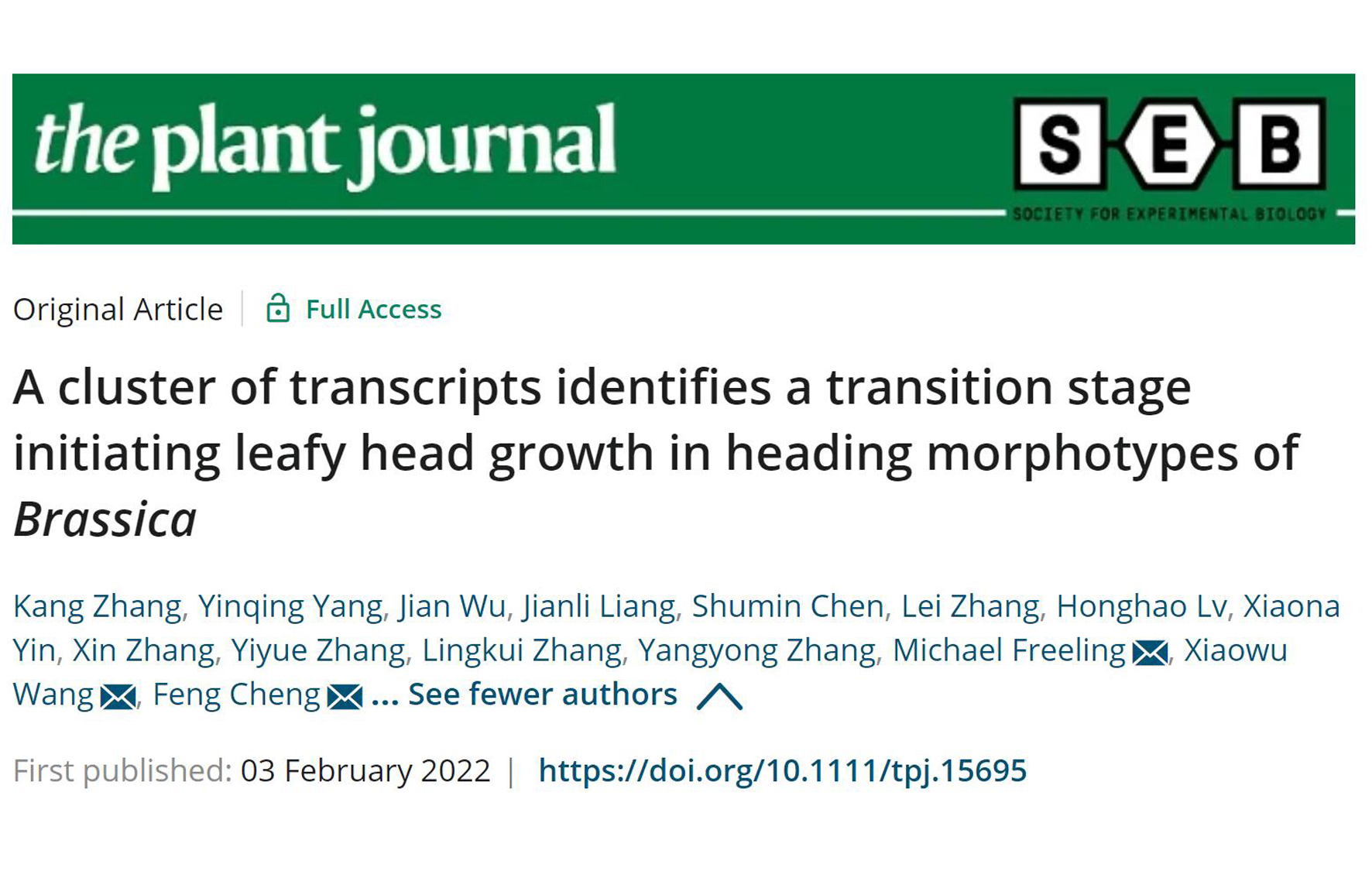 近日,中国农业科学院蔬菜花卉研究所分子设计育种团队在大白菜结球的转录调控方面取得新进展。该研究通过大规模时序转录组分析发现了大白菜叶球发育过程中存在以转录重编程为特征的结球转变期,并揭示了植物激素乙烯在大白菜结球发育中的特殊调控作用。相关内...