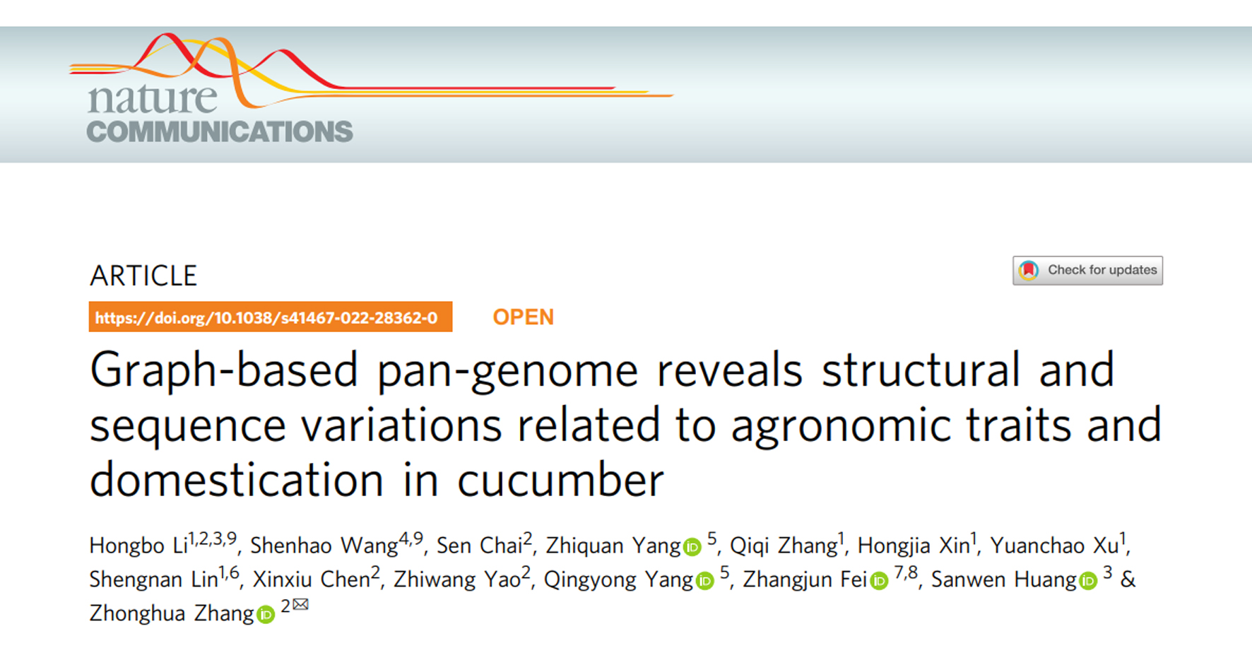2022年2月3日,Nature Communications在线发表了中国农业科学院蔬菜花卉研究所功能基因课题组题为Graph-based pan-genome reveals structural and sequence variat...