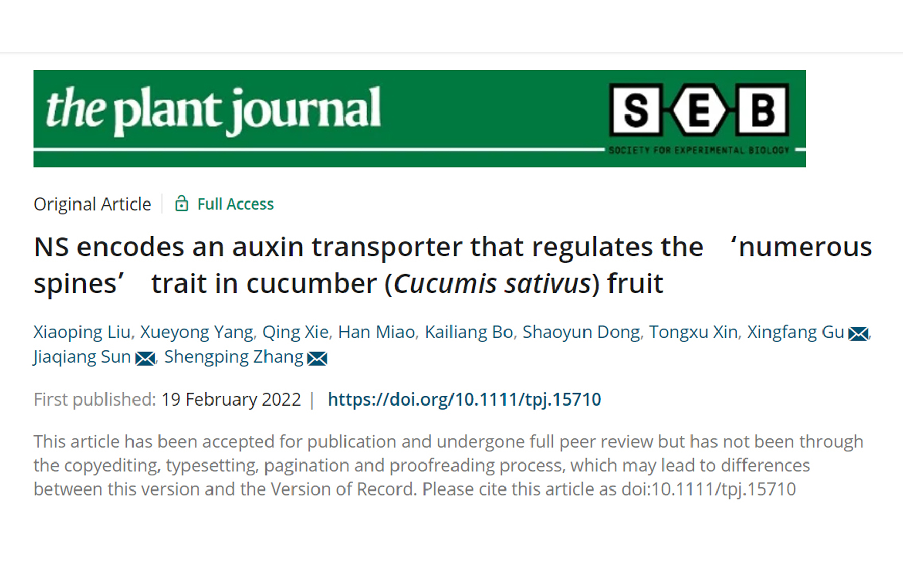 近日,中国农业科学院蔬菜花卉研究所葫芦科蔬菜遗传育种创新团队和蔬菜功能基因组创新团队合作在黄瓜果刺生长发育调控研究上取得重要进展。该研究通过基因编辑和转基因验证了NS基因调控黄瓜果实多刺这一重要外观品质性状,完善了果刺生长发育的调控途径。相...