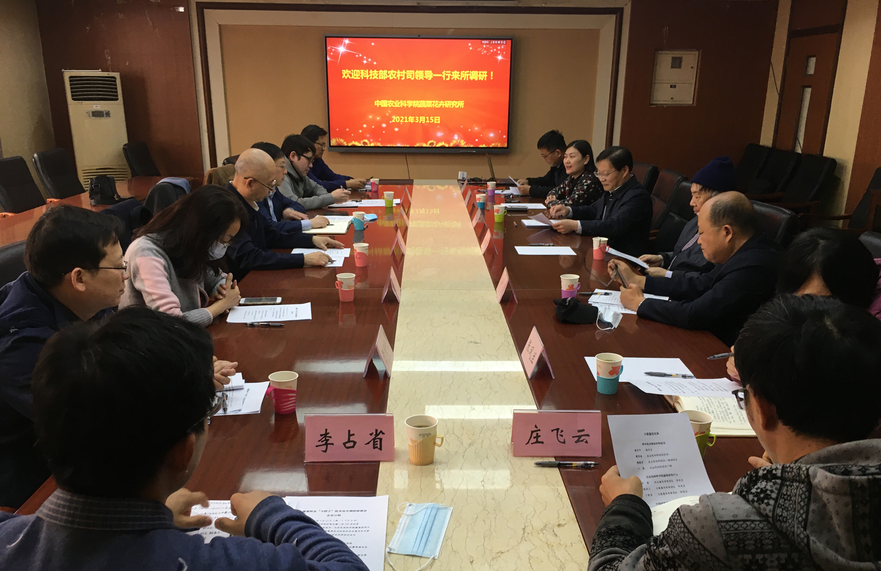 3月15日,科技部农村科技司蒋丹平副司长、农业农村科技处霍季春处长等一行到蔬菜花卉研究所就蔬菜种业“卡脖子”技术攻关进行调研。蔬菜花卉所方智远院士、中国农科院科技局熊明民副局长、副所长张圣平陪同调研。李蕾处长主持调研会。