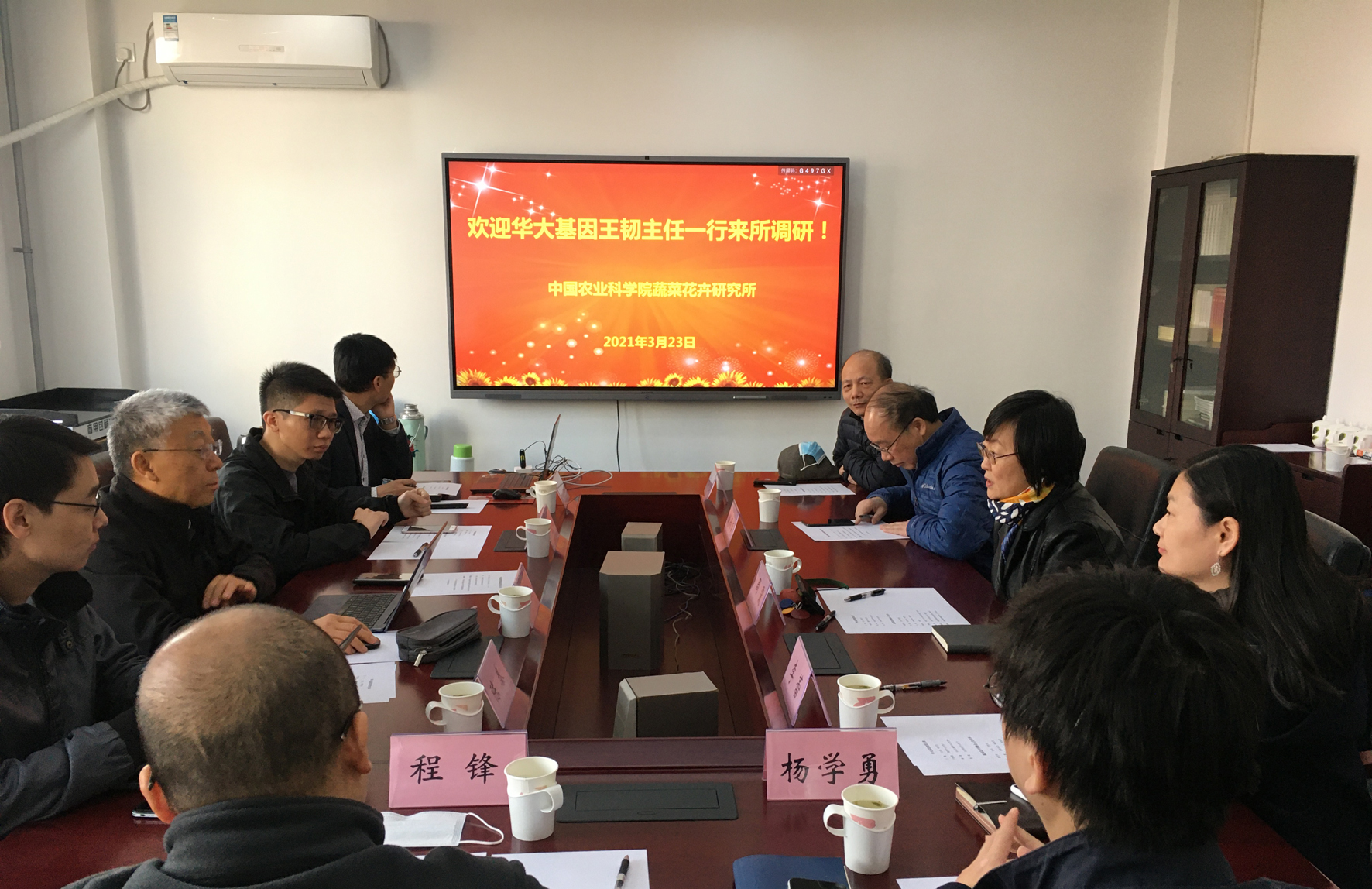 3月23日,深圳国家基因库王韧主任一行到蔬菜花卉研究所调研,双方就科研合作等内容深入座谈交流。蔬菜花卉研究所党委书记周霞出席,科研处处长李蕾主持会议。