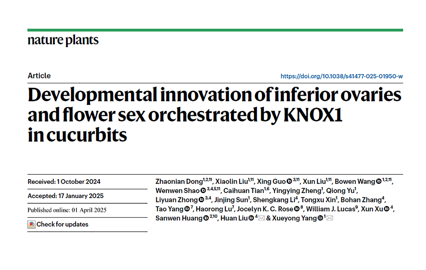 • 2025-04-01 Nature Plants|蔬菜花卉研究所杨学勇团队联合深圳农业基因组研究所,华大生命科学研究院揭示“黄瓜下位子房发育”的进化密码