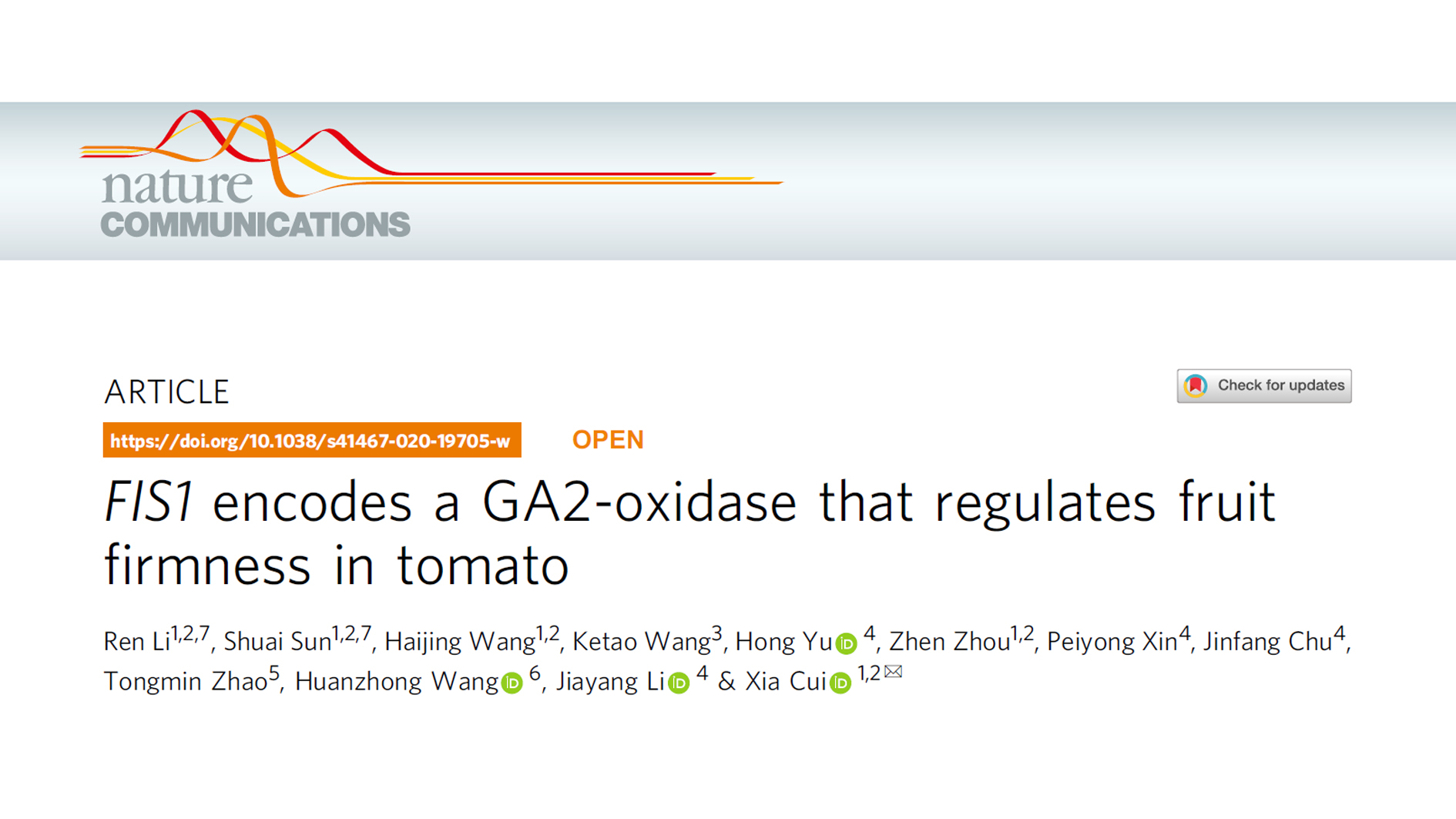 • 2020-11-18 崔霞课题组首次揭示调控番茄果实硬度形成的分子机制