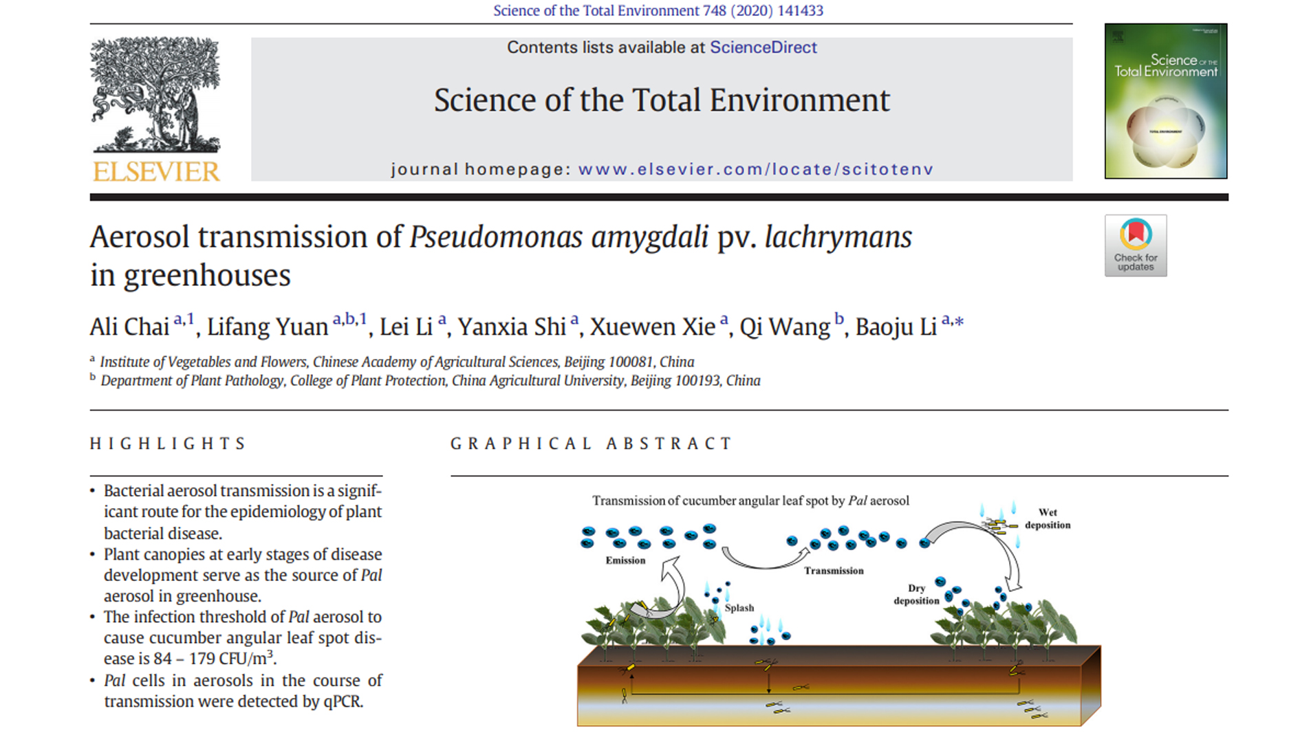 • 2020-11-18 李宝聚团队国际上首次揭示气溶胶是植物病原细菌性病菌传播的有效途径