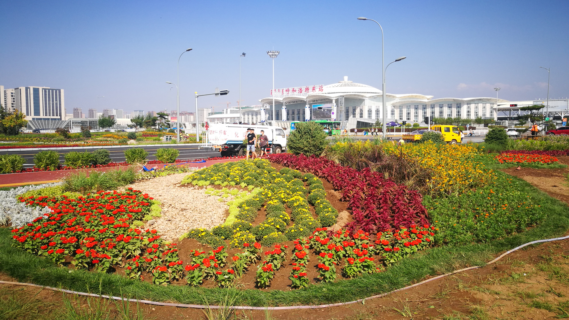 8月10至16日,中国农业科学院蔬菜花卉研究所应呼和浩特市园林建设服务中心邀请,组织花卉专家设计并完成呼和浩特东站大型花卉景观营造工程。