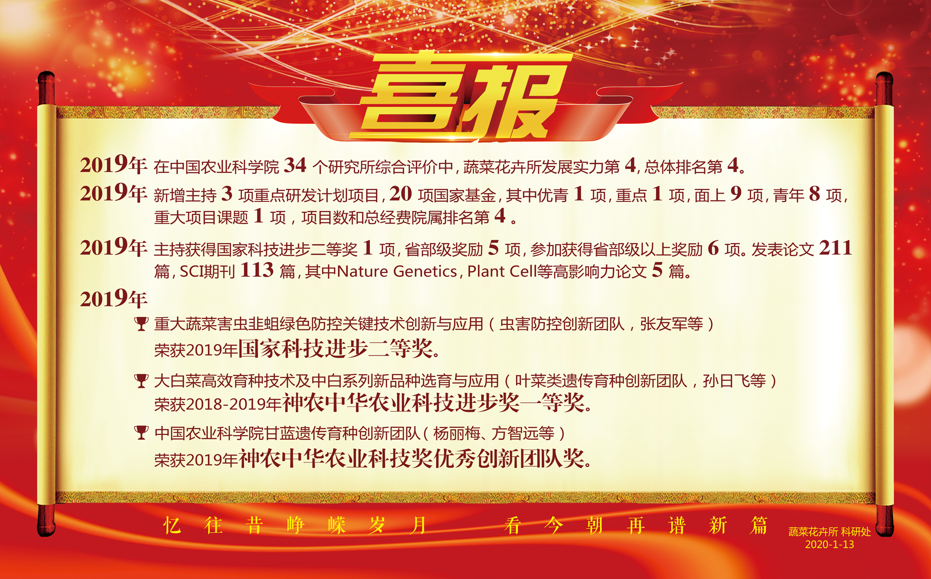 • 2020-01-17 蔬菜花卉所在中国农业科学院信息化水平综合评估中获评优秀