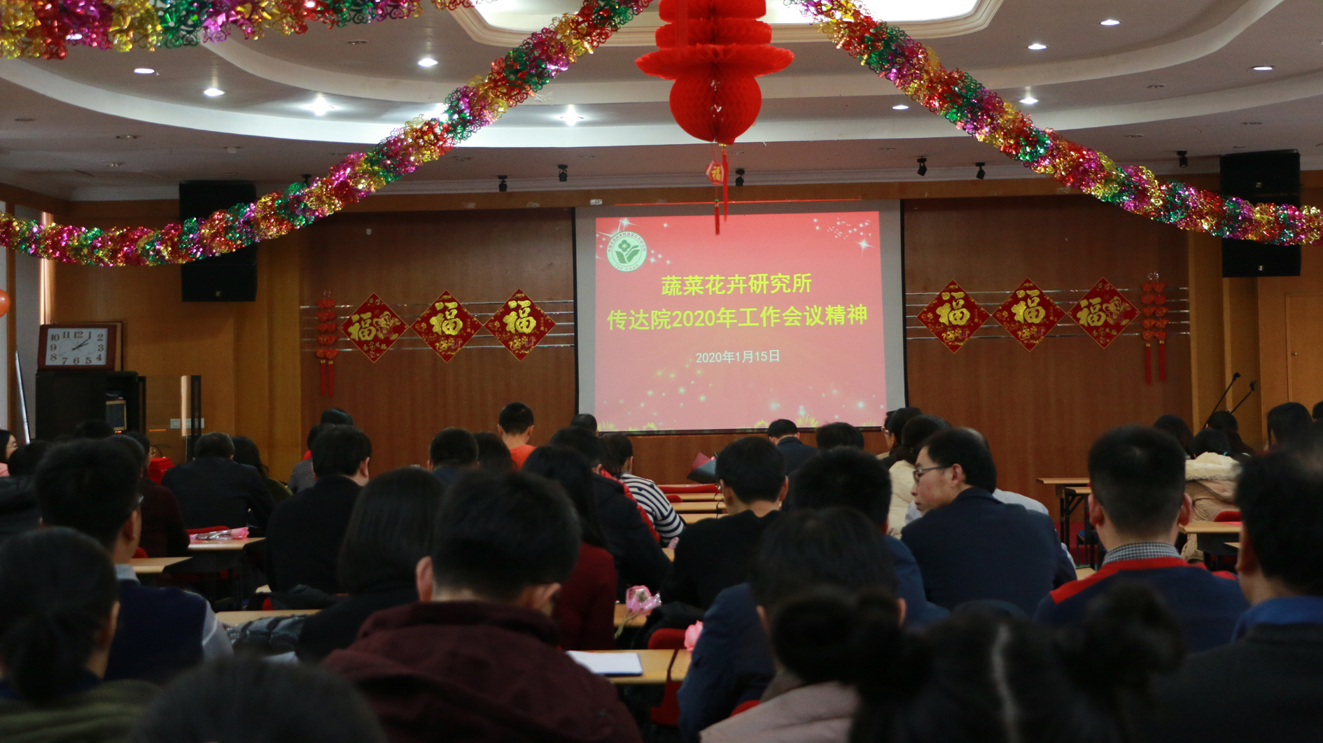 2020年1月15日下午,蔬菜花卉研究所在实验楼大报告厅召开2020年院工作会议精神传达暨2019年度总结表彰会。