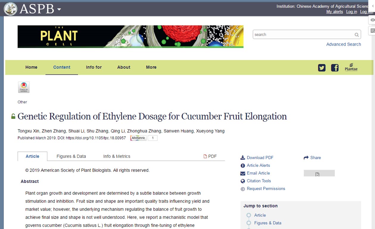 • 2019-03-27 蔬菜所和深圳农业基因组所揭示黄瓜果实发育的乙烯调控机制