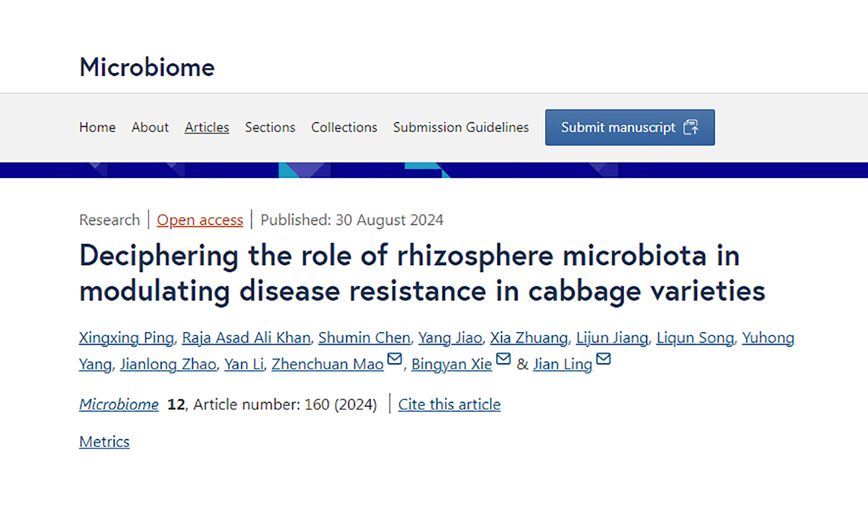 近日,中国农业科学院蔬菜花卉研究所(以下简称蔬菜所)病害课题组在国际著名期刊Microbiome (IF 13.8,微生物领域1区top5%) 在线发表了题为“Deciphering the role of rhizosphere micr...