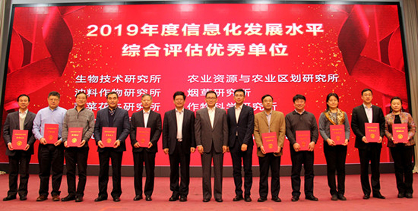我所在2019年度中国农业科学院信息化水平综合评估中喜获优秀等次,目前信息化整体水平处于全院前列。本次评估从信息化管理、基础环境、信息化应用和网络安全等方面进行综合评估,涵盖信息化建设发展各个方面。