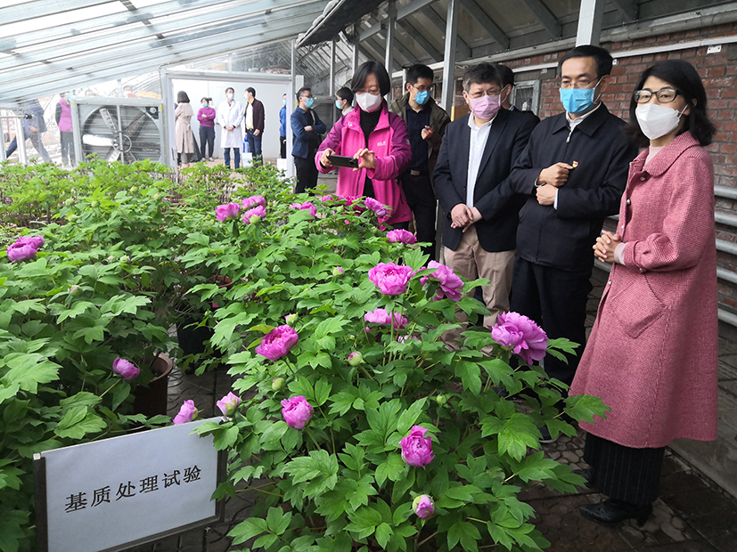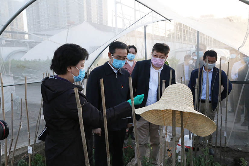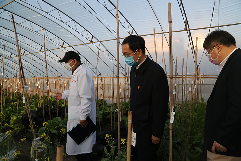 在日光温室和塑料大棚中,沙海江一行详细了解黄瓜新品种、白菜种质资源、甘蓝阳畦授粉、牡丹花期调控等情况,听取了顾兴芳研究员、张淑江研究员、杨丽梅研究员和张秀新研究员关于新品种、新技术、新成果的介绍,并就知识产权保护、属地合作、研发中心建设、科研成果转化等内容与陪同所领导交流研讨。