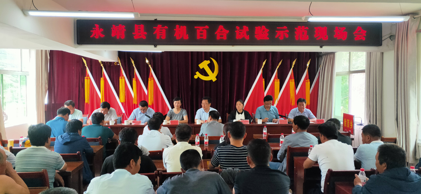 为贯彻落实中国地震局和中国农业科学院脱贫攻坚的总体部署,2020年7月30日,由中国农业科学院蔬菜花卉所组织,中国地震局永靖县定点扶贫工作组协调,永靖县农业农村局农技推广中心承办,联合甘肃省农科院等6位专家,在兰州百合核心产区永靖县徐顶乡,召开了“永靖县有机百合试验示范现场会”。永靖县委常委徐鑫副县长、农业农村局刘德胜局长、徐顶乡党委书记以及相关乡镇等相关部门领导出席会议,刘德胜局长主持。现场会包含专家技术报告、试验地现场查看和现场答疑三个议程。