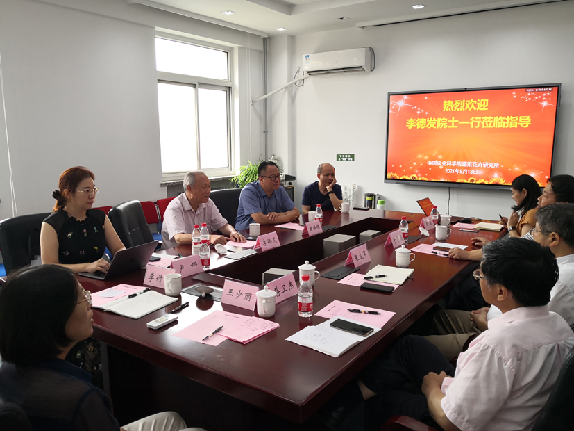 8月13日,中国工程院院士李德发、中国农业大学校长助理曲瑛德等一行到蔬菜花卉所交流指导,就在京瓦农业科技创新中心下建设设施园艺中心事宜与张友军所长进行深入交流。