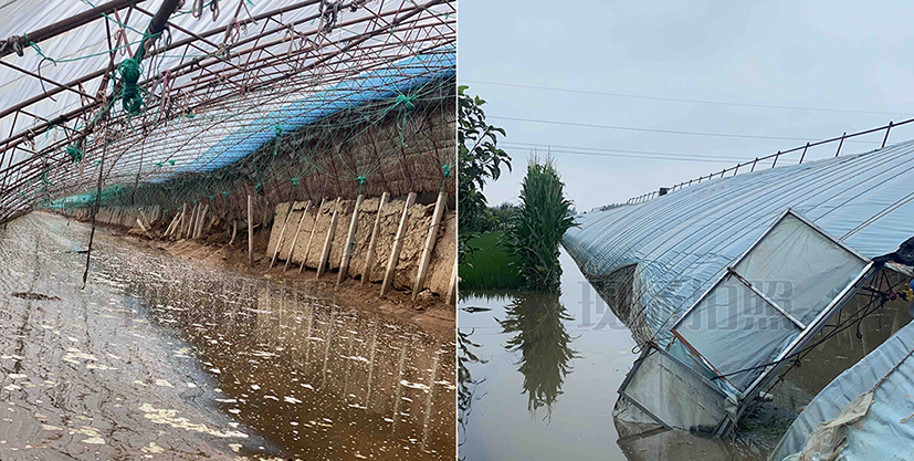 7月29日,中国农业科学院蔬菜产业专家团辽宁工作站专家赶赴受灾现场进行实地调研,发现当地几乎所有的温室都已泡水 3天以上,部分温室出现土墙和温室坍塌现象,已经定植的秧苗几乎全部受损,需要重新栽苗。准备7月末定植的温室将被迫推延1个月左右的时间,需重新育苗到8月末定植。