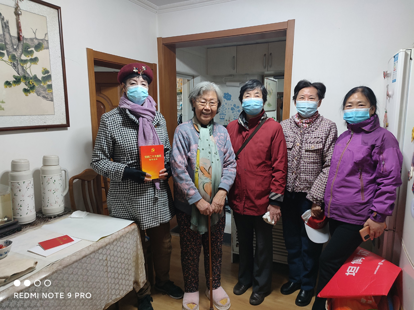 在送去慰问品的同时,支部还专门为大家送上了习近平总书记在中国共产党第二十次全国代表大会上的报告《高举中国特色社会主义伟大旗帜为全面建设社会主义现代化国家而团结奋斗》、《党的二十大报告辅导读本》和新修订的《中国共产党章程》。为了让老同志及时感受到党的关怀,及时看到纸质版的二十大学习材料,支委们按照疫情防控的要求,在做好个人防控的前提下开展了此次看望活动。11位同志居住在不同小区,其中农科院大院内8位,院外3位,较远的在西三环莲花小区和北五环外的西三旗,用时接近1整天。