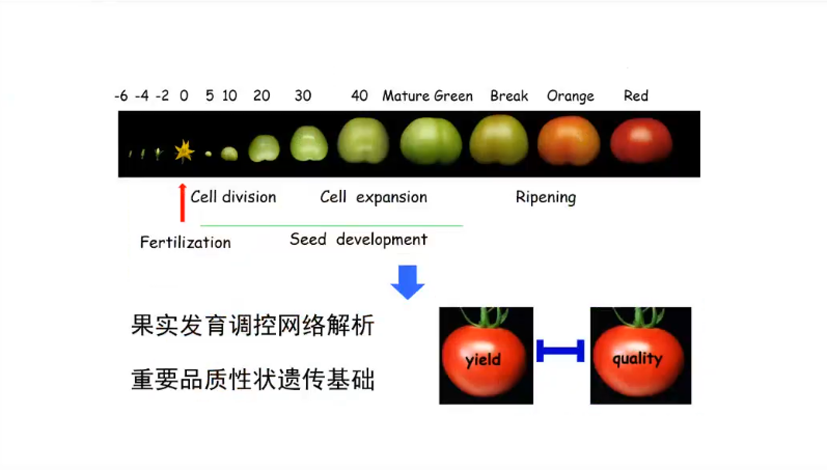 崔霞研究员(科技部重点研究计划、自然科学基金委面上项目主持人,在Nature Genetics、Plant Cell、PNAS、MolecularPlant等高水平杂志发表文章20余篇),作了关于“番茄果实发育调控”的学术报告,介绍了关于番茄果实发育的调控(比如番茄怎么起始、膨大、变红等),番茄品质如何形成的相关研究。她生动详细地介绍了调控番茄花序,影响番茄果尖,调控番茄硬度等特异表达基因,最后代表课题和生物技术室欢迎大家报考。