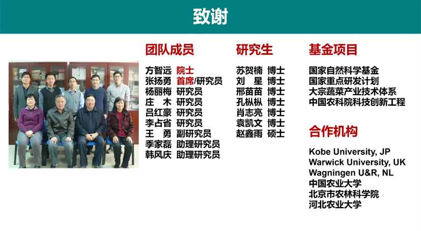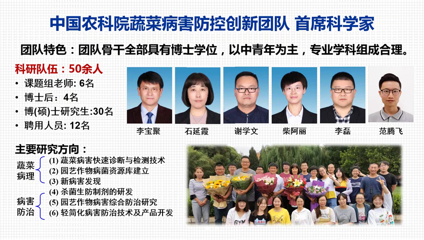 李宝聚研究员(中国农科院蔬菜病害防控创新团队首席科学家、 “十三五”国家重点研发计划项目首席科学家)作了题为“把论文写在祖国的菜田里”的交流分享。他结合自身成长经历讲述深厚的三农情结,介绍了蔬菜病害防控创新团队及承担的国家级科研重点项目工作,并用七个代表性成果概括了团队在蔬菜病害诊断与综合治理取得的突出业绩。