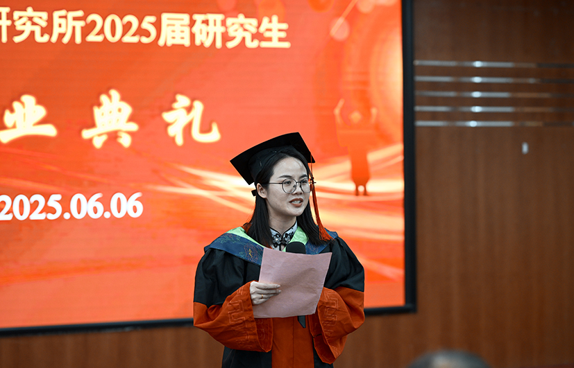 毕业生代表董丽娜、徐迎澳、陈海旭、翟荣启分别发言,对研究所领导和导师的培养表示感谢、对同学的帮助表达感怀、同时对毕业生同学送上最真挚的祝福。