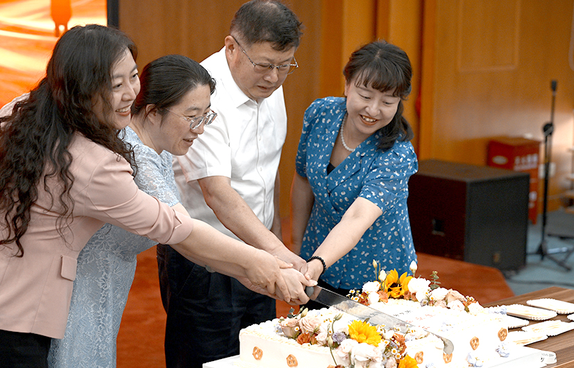 张友军所长为全体毕业生拨穗、颁发证书,并与杨建玲处长、翟研宁副所长、王芳书记一同为毕业生同学分发毕业庆祝蛋糕。