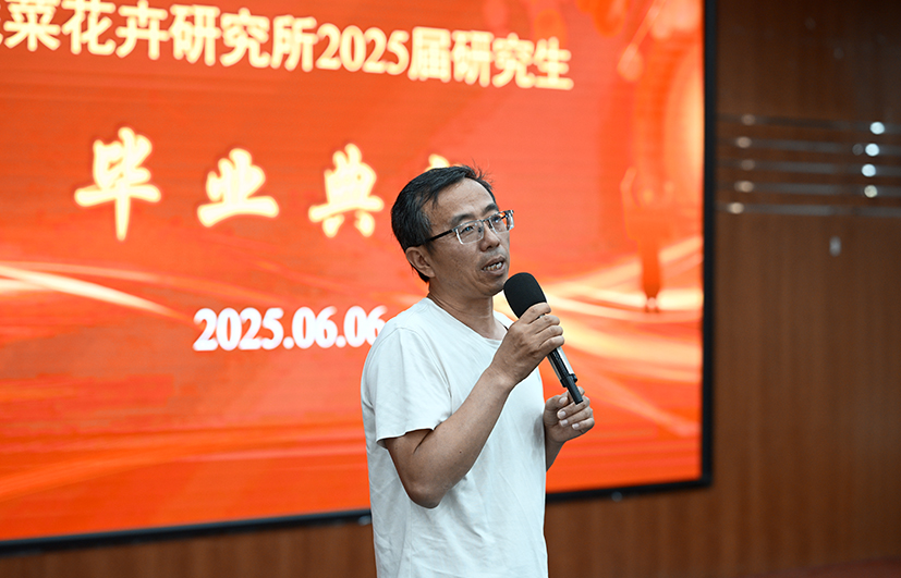 白菜课题组张淑江研究员、胡萝卜课题组庄飞云研究员、昆虫课题组郭兆将研究员作为导师代表发言。他们祝贺研究生顺利毕业,希望同学们能够传承中蔬精神,在日后的工作和科学研究,志存高远、脚踏实地,让“学习”成为终身的习惯、将“创新”作为行动的指针。
