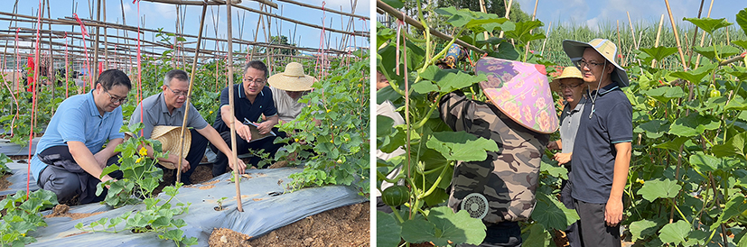 在海南,蔬菜产业专家团陈贻诵研究员、蔡兴来研究员、孙晓东研究员等专家,前往澄迈县金江镇、海口市东山镇、琼海市等地,围绕灾后复产、夏淡季节蔬菜生产等问题进行现场调研,重点对豇豆、茄子和叶菜等蔬菜生产进行技术指导,尽最大努力降低高温暴雨灾害给菜农带来的不利影响,助力夏淡蔬菜保障供给。