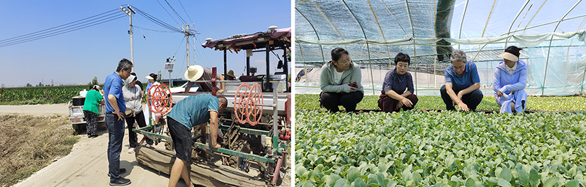 在河北,蔬菜产业专家团王明秋研究员、玉田县农业农村局艾会暖副局长等专家带队,到玉田县虹桥镇,围绕汛期减灾防灾、机械化播种、秋季蔬菜生产等进行现场调研指导。近期,玉田县出现大范围降雨,造成土壤含水量高,对秋季露地蔬菜播种带来不利影响,服务团针对此情况,深入蔬菜种植一线,详细了解了基地、合作社、农户受影响情况及应对降雨工作举措,根据调研情况,提出露地及时补播、棚室育苗管理等指导性意见建议。在开展技术服务的同时,服务团还了解了当地露地蔬菜机械化播种、肥水一体化等情况,提出推动农机农艺深度融合的意见建议,并向当地蔬菜基地提供优质秋季大白菜新品种,满足市场多元化、品质化需求。