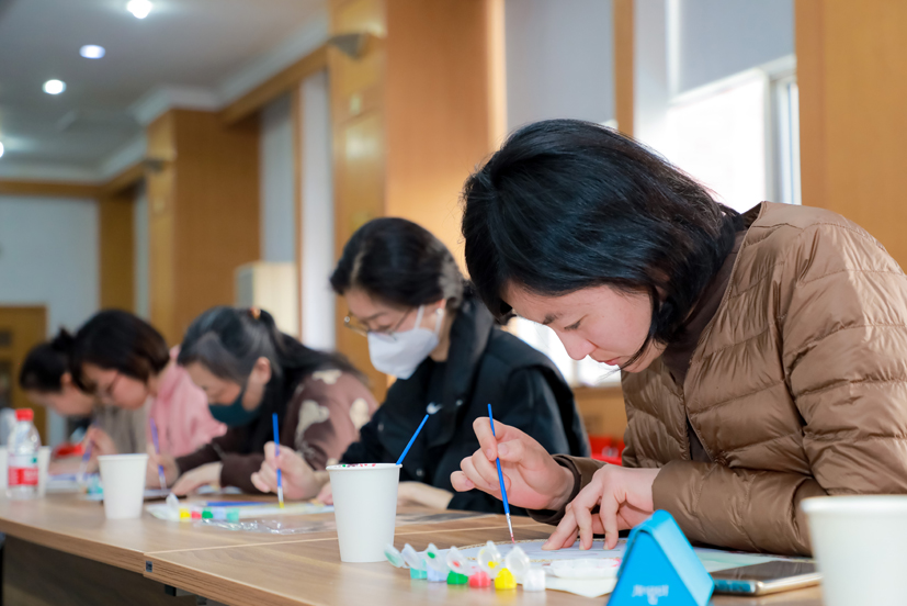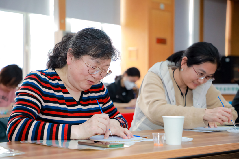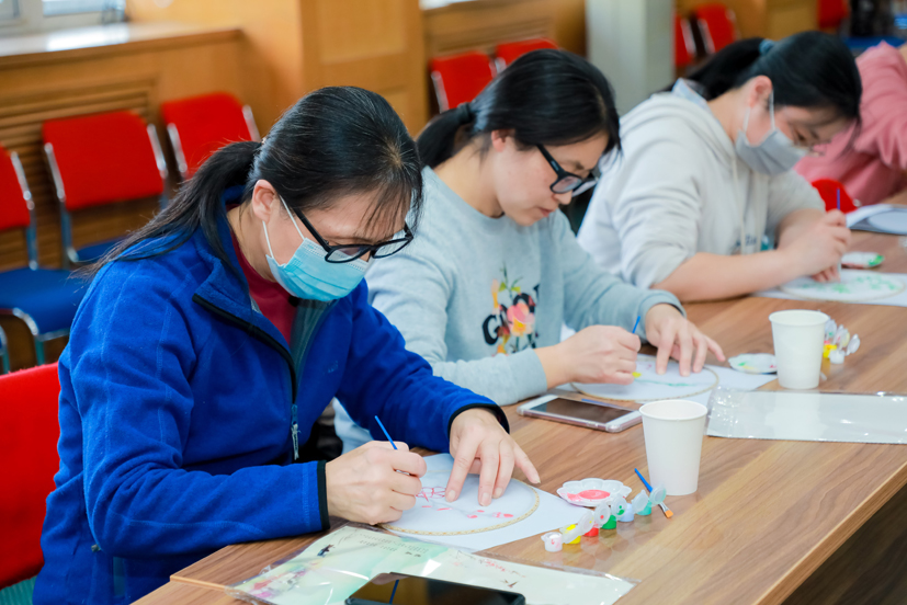 在随后开始的手绘团扇活动中,大家认真聆听专业老师讲解,学习运笔、调色等绘画技巧。提笔蘸墨、勾线上色,高洁莲花、相思红豆、落英缤纷等图案跃然于扇面之上,大家执扇合影留念,在轻松愉快的氛围中感受传统文化,在节日的气氛中为生活增添一抹亮色。